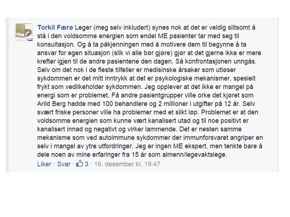 Og til dere leger som setter ME-diagnose på folk som har blitt syke pga. stress eller vonde barndomsminner: Dere gjør feil. Finn en annen diagnose.