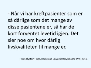 Mange av dere er mine MEd-pasienter. Til dere vil jeg si: Jeg vet at mange av dere lever i et helvete. Takk for at dere holder ut, og takk for at vi kjemper sammen. Dere er mine helter. Denne kampen skal vi vinne.