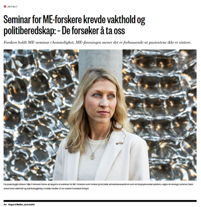 In Morgenbladet, Reme warns journalists who write about the ME debate to tread carefully. She also recently warned the National Research Ethics Committees, NEM.