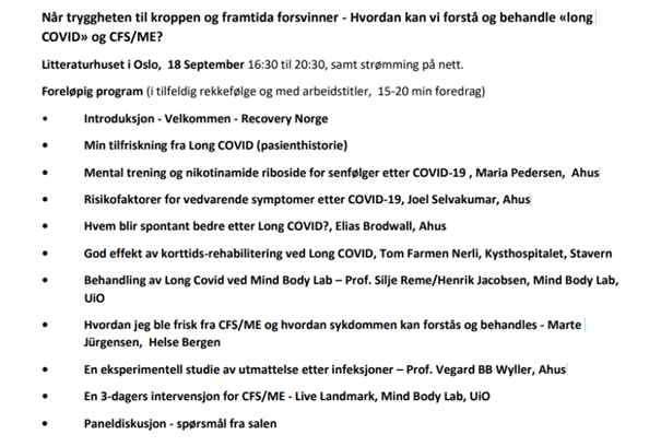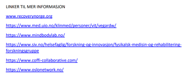 I programmet er det linker til bl.a. de kontroversielle Oslo Chronic Fatigue Network og COFFI Collaborative.