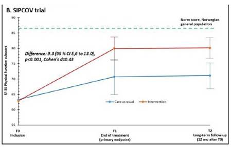 I denne delen skal vi se nærmer på SIPCOV-studien. Den er norsk og handler om et “Kort poliklinisk rehabiliteringsprogram for post-COVID-19-tilstander”. Behandlingsmetoden innebar grundig informasjon om sykdomsmekanismer og enkle endringer av atferds- og tankemønstre.